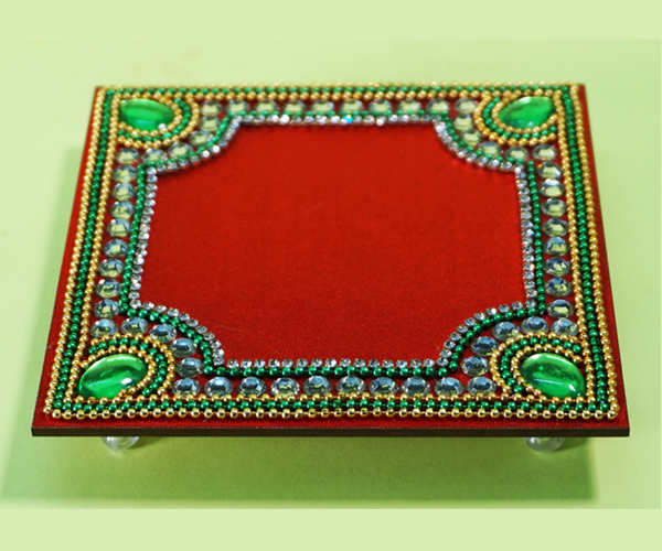 Wooden Chaurang decorated by Shubharthis, used to keep any decorative items like Idols of dieties, Statues, Stand Frames, Small flower Pots etc.
